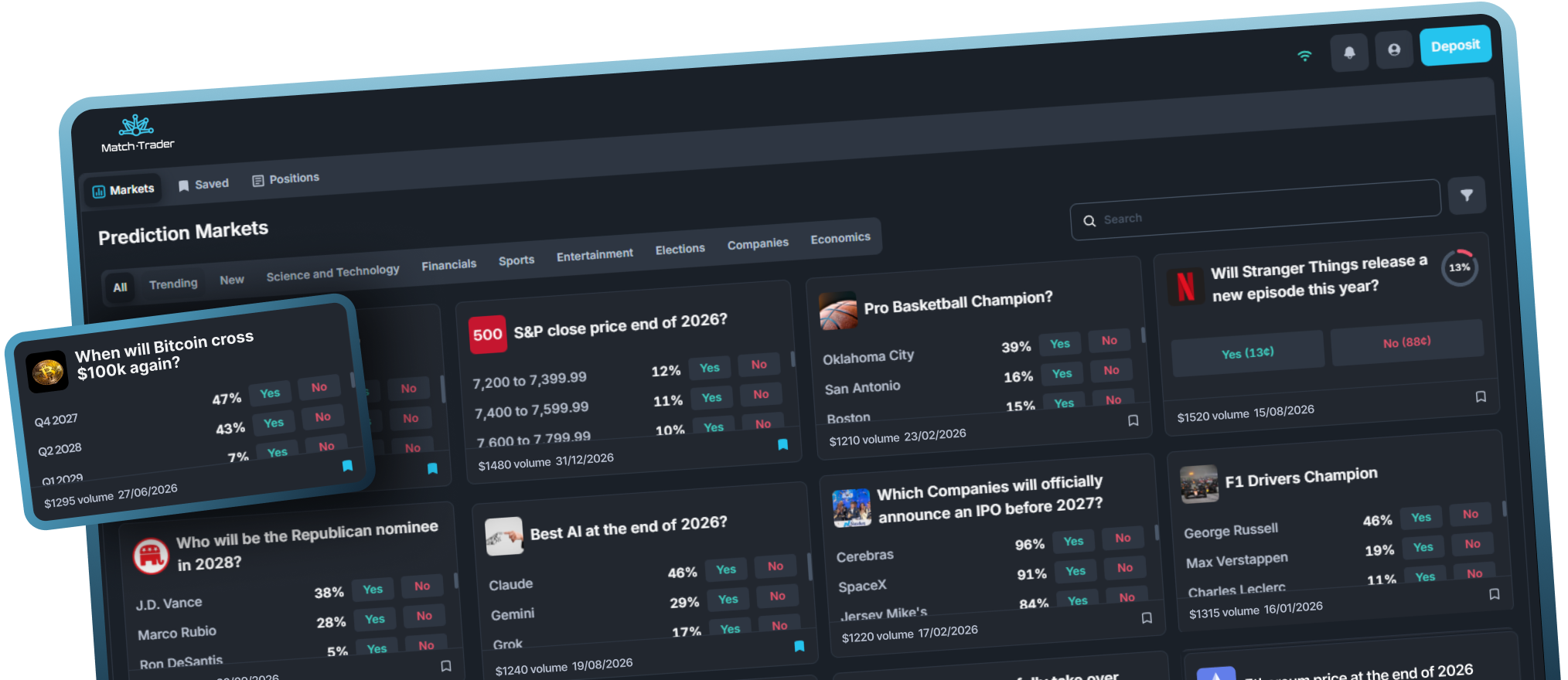 Prediction Markets is available as a standalone solution or as an add-on to our FX & Prop platform. Contact our sales team to explore the best setup for your business.