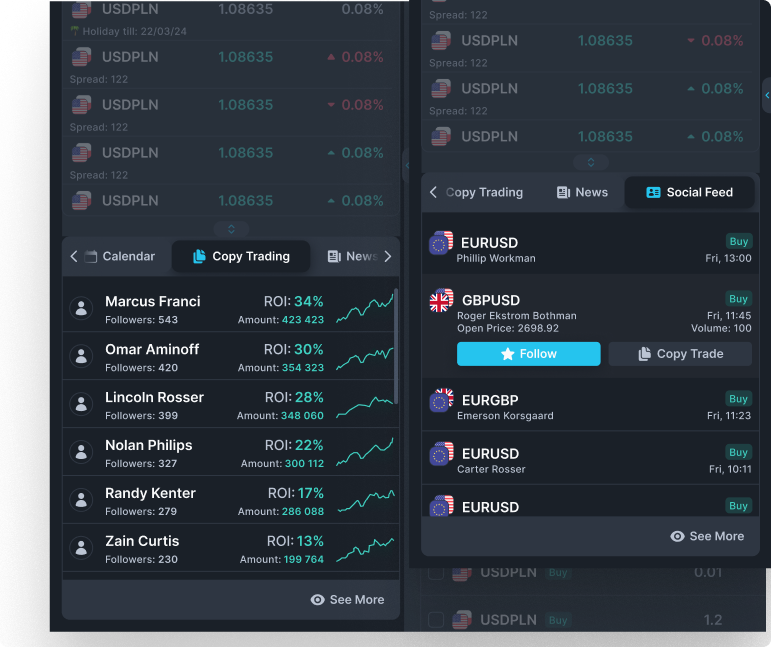 Without leaving the app, Traders can make a deposit and verify themselves (also with external KYC solutions integrated into the platform, such as SumSub). Introducing Brokers can quickly go to the Partner Room.